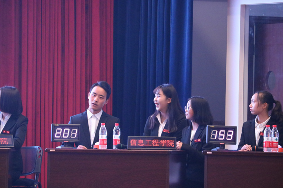 本次比赛一共有八个学院参赛,每个学院都各自展现风采,信息工程学院的各位代表精神抖擞,充满斗志,发挥自己的长处为学院争分赢取荣誉。比赛正式开始了,第一轮是“必答环节”,是每个队伍展示实力的时刻了,选手们一个个机智果敢,胸有成竹地答题。第二轮是“抢答环节”,当然啦,抢答环节就是考验选手们快、狠、准的反应能力了,信息工程学院的选手们为了抢得题目的回答权都拼尽了全力,选手们都表现镇定,自信果断,为了自己的队伍奋力拼搏。观众鼓掌声不断,赛场气氛热情高涨,比赛也越来越激烈。