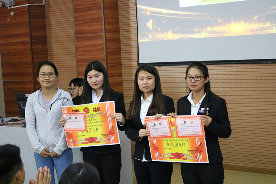 会议一开始全体人员起立奏唱国歌,嘹亮的歌声填满了整间教室。之后由颜老师发言。颜老师带着全体学生会成员进行青年大学习,指出如何做一名优秀共青团员,深入学习、宣传、贯彻习近平新时代中国特色社会主义思想和党的十九大精神,通过构建“导学、讲学、研学、比学、践学、督学”六位一体的学习体系,促进广大青少年不忘初心。颜老师的一番话全体成员入耳入心。紧接而来的是学生会主席雷顺栋对近期工作的总结,表达了对之前工作的肯定,以及对学生会成员的希翼与鼓励。同时,也指出了工作中存在的一些问题和不足之处。他强调全体成员要强化责任意识, 加强学习, 积极参与到学生会的各项工作当中。随之而来的是优秀部员、优秀部门、优秀部长、优秀团支部和优秀团支书颁奖。这是对他们上个学期的工作一个莫大的肯定!颁发完所有奖项,由外联部部长尚悦代表优秀部门,部长发言,,尚悦分享了自己的心得体会并强调“不要和别人作比较,要和过去的自己作比较,比过去的自己优秀就是成功”激励学生会的成员奋勇直前。迎来了会议的结束,全体起立奏唱团歌。云南师范大学文理学院信息工程学院团委学生会第二次全体大会在这响亮的歌声中圆满结束。