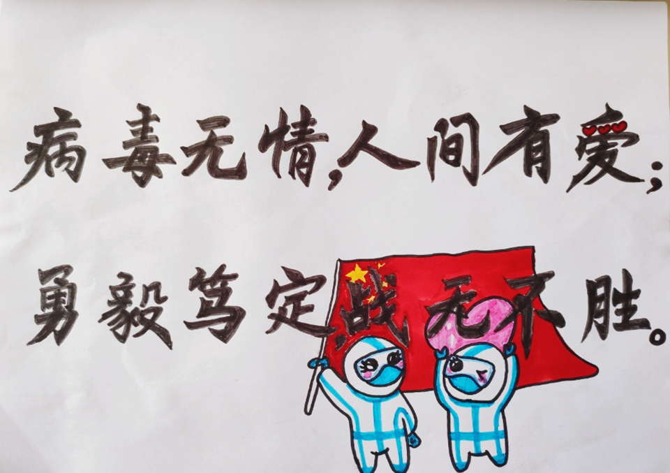作为数学与应用数学专业,我们用数学函数表达对白衣天使的爱,致敬最美“逆行者”。团支书在团日活动上发起了书法作品大赛,本班团员青年在纸上抒写着对祖国满满的热爱。疫情之下我们青年应肩负起疫情防控斗争中的时代责任。我们不仅仅向同学们展示了信息工程学院参与疫情防控的优秀学子,在团支部中,有两位同学参加了志愿防疫工作,他们向我们分享了自己在防疫工作中的新的感受,让我们更加直观的感受到了当前疫情的紧迫性。
