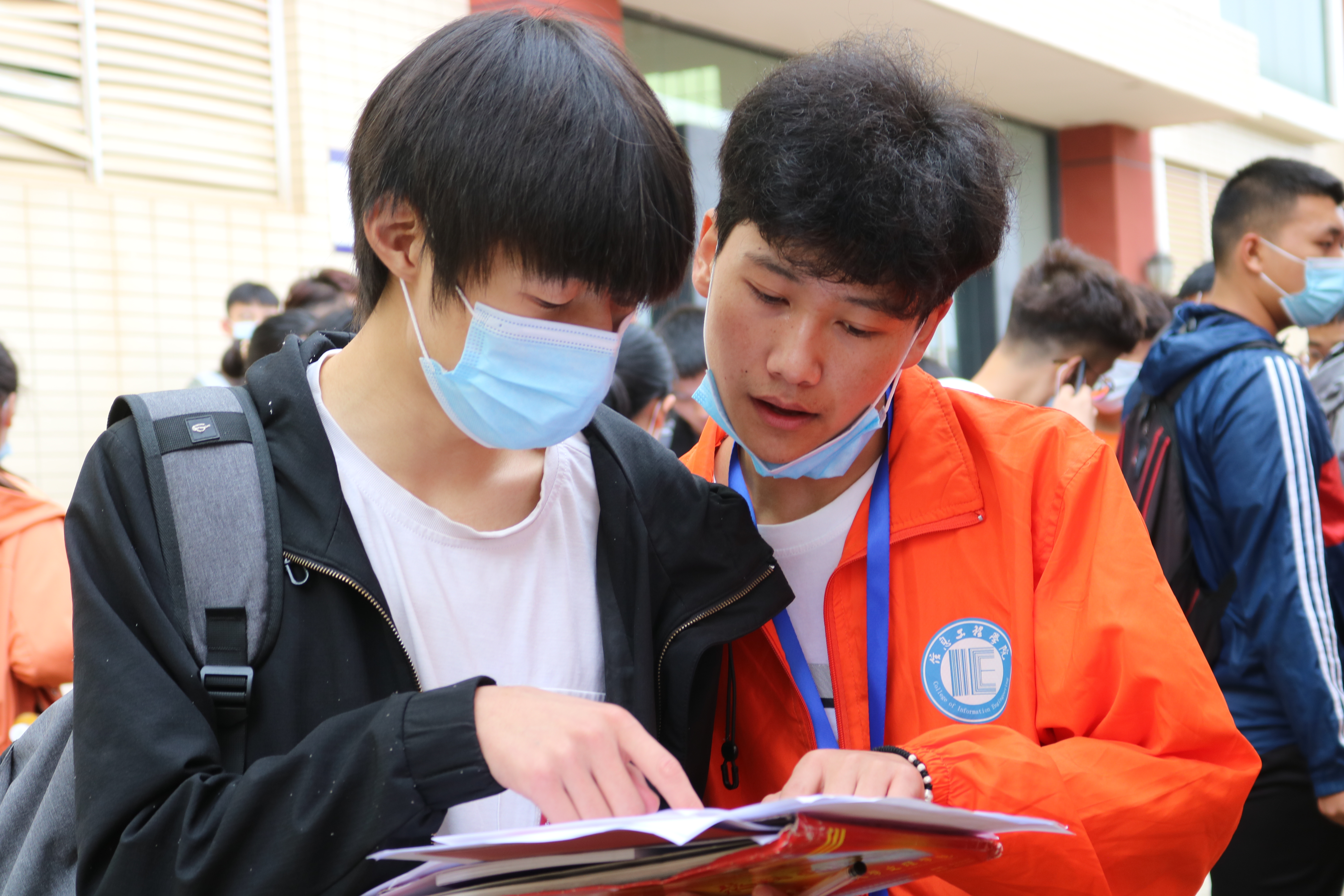 2020年9月25日,信息工程学院迎来了前来注册报到的新生。我院的迎新志愿者和新生辅导员们早早地来到了学校体育馆接待处、行李寄存处以及学校大门口等地,为迎接20级新生而进行着忙碌又紧张的准备工作。9月的细雨带来一丝微凉,然而同学们的仍然热情高涨。新生报到的主要地点——体育馆侧新生接待处,学院设置有专门的引导摊位,负责提醒新生填写表格,收集新生的基本信息,并引导新生完成报到流程。