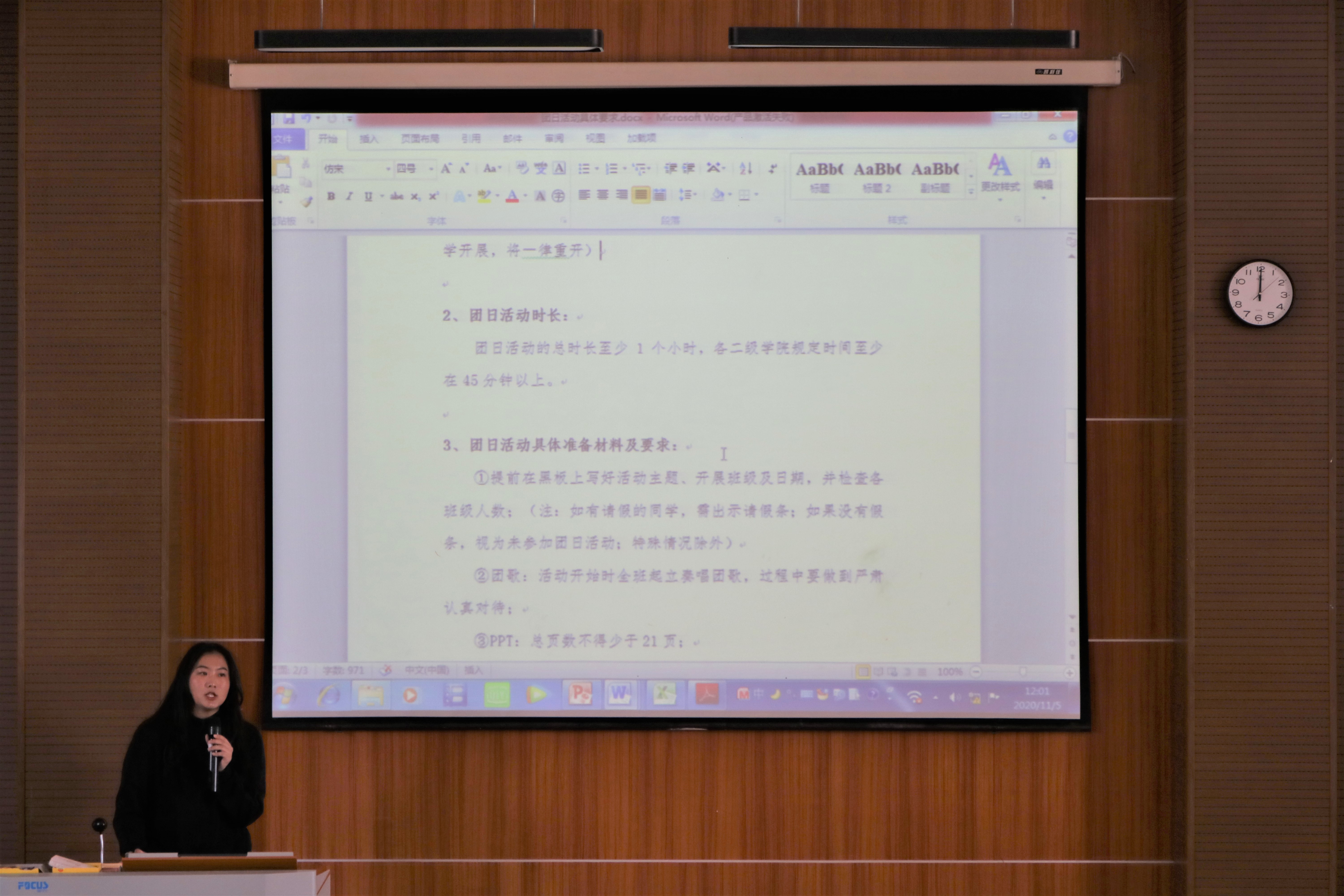 首先,组织部副部长沈文玲提出了关于各班级团支书所负责的工作。部门组长的责任重大,并希望团支书带动校园风气,杜绝不文明现象。