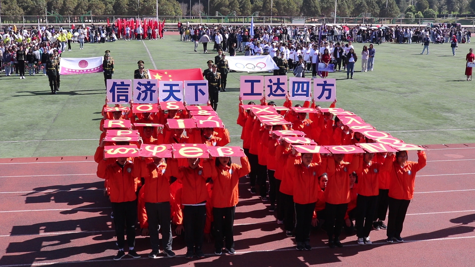 看!这矫健的身姿。看!这自信的笑容。运动健儿们昂首阔步,迈出自信的步伐。信息工程学院的代表队手擎着“信济天下,工达四方”的标语牌,完美的展现了云南师范大学文理学院“志存高远,报效祖国”的校风。他们用数学符号拼凑成的20字样,庆祝着云南师范大学文理学院的第20个生日。在这肆意飞扬的岁月里,信工人用自己的行动,完美的诠释了青春的意义。