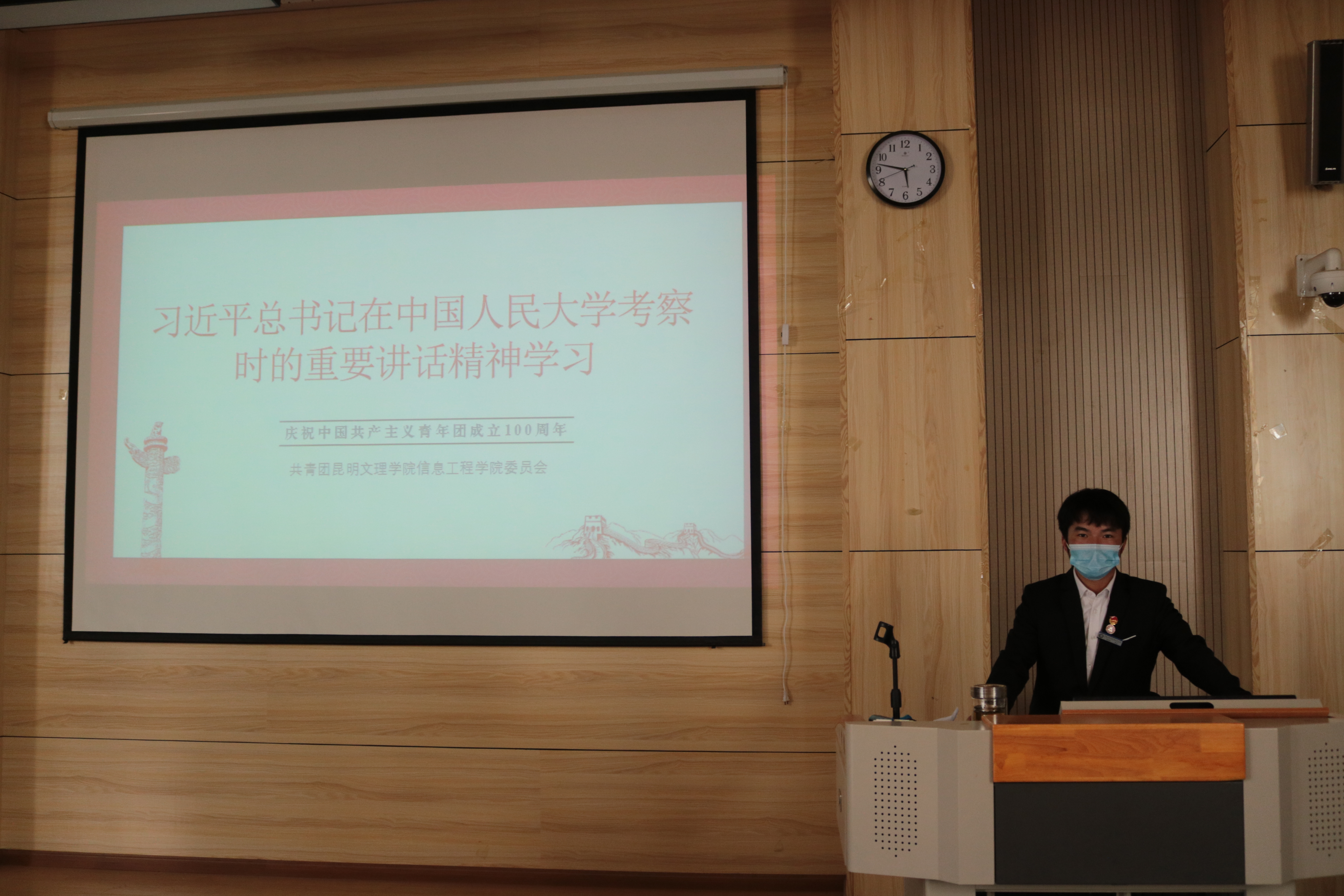 为庆祝中国共青团成立100周年,增强团员意识,提高我院学生干部凝聚力,信息工程学院于2022年5月11日在昆明文理学院杨林校区教学楼C112举办一期“庆祝中国共产党青年团成立100周年大会”直播观看活动暨习近平总书记在中国人民大学考察时的重要讲话精神学习活动。参加本次主题会议的有党委书记、党委各位委员、党支部书记、教师代表、各班团支书以及信息工程学院团委学生会全体成员。