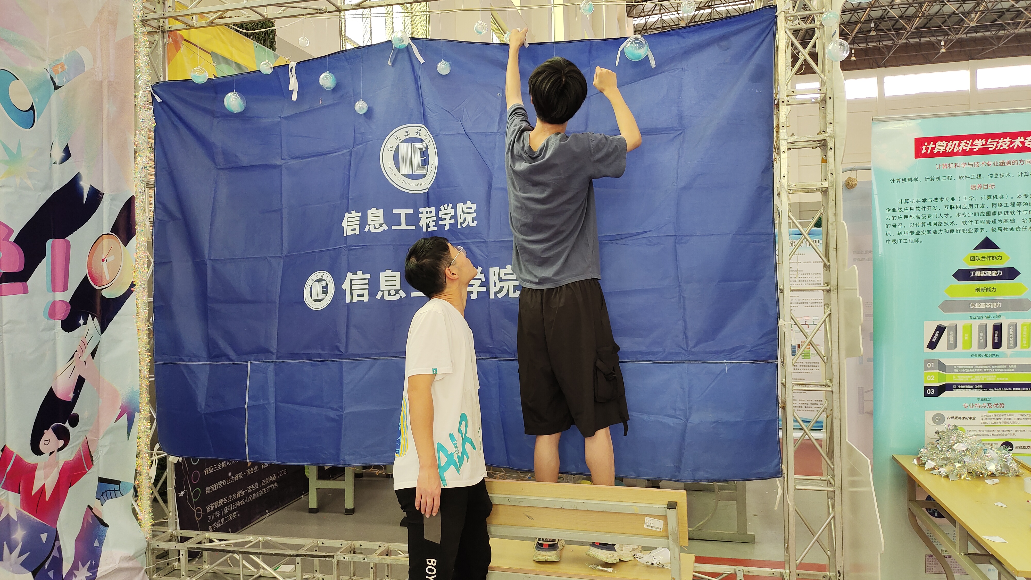为了给新生提供更安全的保障和更周全的便利服务学院提前做好了全方位的部署,志愿者们则提前到校布置信息工程学院的迎新大棚并带有十分的热情,只为让新生在信工体会到家的感觉。正式开学这天,信息工程学院的志愿者们更是早早做好了准备以迎接本院的新生。