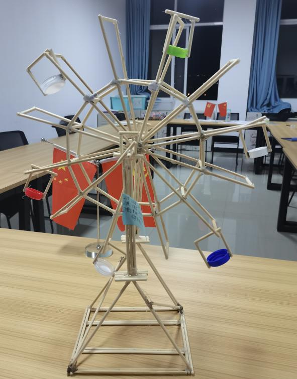 为体现本次活动的重要性,老师也亲临现场指导学生们的作品,并勉励学生们再接再厉,不断提高自身的科学素质,努力做时代的先行者。信息工程学院的学生们在参赛过程中不断发挥自己的创造性思维,创造出了许多优秀作品:有代表着时代高度,代表着历史长河的《纸壳红船》,“红船”既是时代的奋进明灯,也是铸就在我们心中永不褪色的丰碑。是青年人用奋斗铸就忠诚,敢于担当使命,弘扬“红船”精神,立鸿鹄之志的时代底色,”红船精神“是开天辟地,敢为人先的首创精神。南湖红船点燃的星星之火,形成了后来的燎原之势,是坚定理想,百折不挠的奋斗精神。还可以欣赏到城市最美夜景的《摩天轮》,有着悠久历史传统文化的《宫灯》......这些优秀作品也将会被推到校级比赛中继续进行决赛。