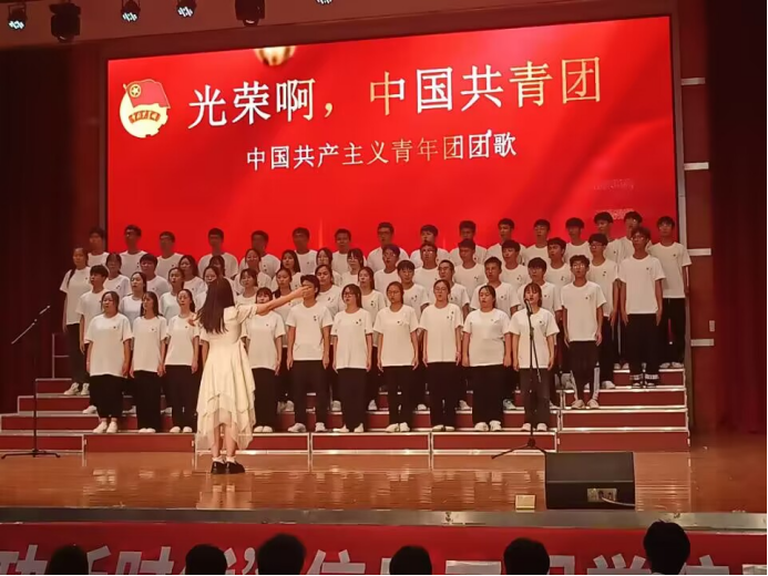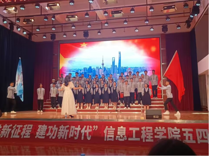 2023年4月27日,为迎接即将到来的五四青年节,信息工程学院在报告大厅举办了一场主题为“五四精神,传承有我。”的活动。本次活动旨在通过歌颂革命先烈、传承红色文化,引导广大学生弘扬五四精神,为庆祝五四运动104周年,大力弘扬“爱国,进步,民主,科学”的五四精神,凝聚青年力量,进一步激发广大青年学生的爱国热情,展现青年学生积极向上的精神风貌。每个班级都需同唱《光荣啊!中国共青团》,引导学生感受昔日的红色精神,强化学生的责任感与使命感,让学生树立做社会主义核心价值观倡导者、践行者的意识,牢记五四的誓言,历史的使命,唤醒同学们心中的青年之魂,关注国家发展,建设未来。