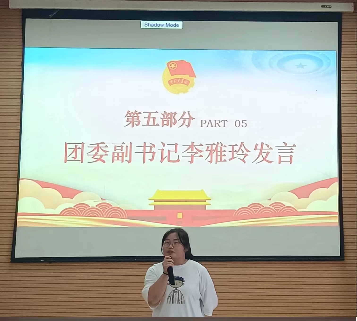 大会第五项,团委副书记李雅玲上台发言