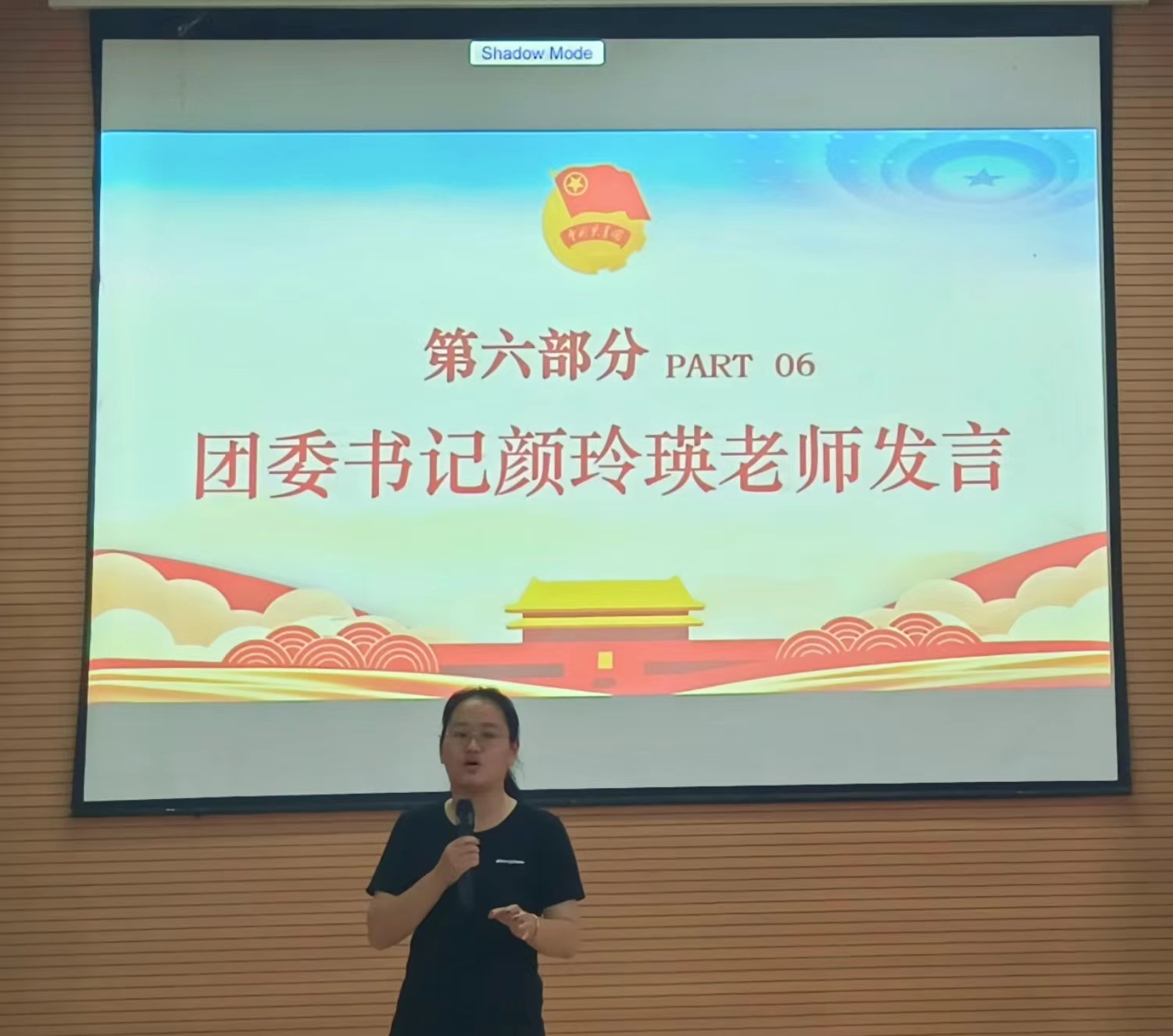 大会第六项,团委书记颜玲瑛老师发言