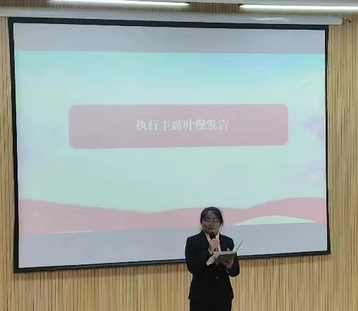大会第四项议程:主持人余嘉媛对信息工程学院团委学生会2023年招新工作人数总结。