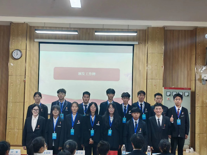 大会第六项议程:颁发信息工程学院团委学生会新干事工作牌。工作牌是每一位团委学生会干事身份的象征,各位部门部长上台为其部门新干事戴上他们期待已久的工作牌。