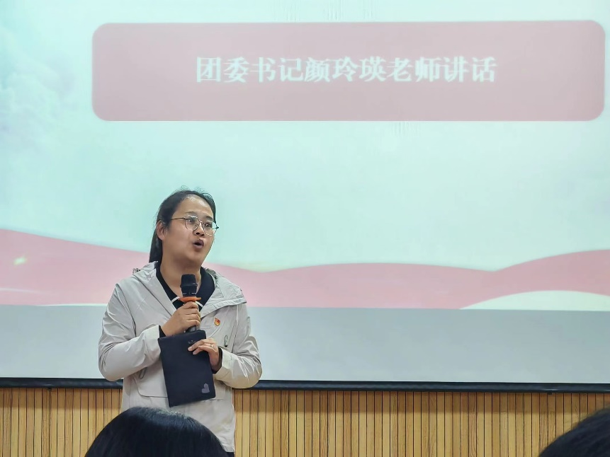 大会第九项议程:信息工程学院团委书记颜玲瑛老师讲话。颜老师对所有新晋干事的加入表示欢迎,接着对往后工作提出要求,对新晋干事行为举止以及学习成绩做出明确要求。