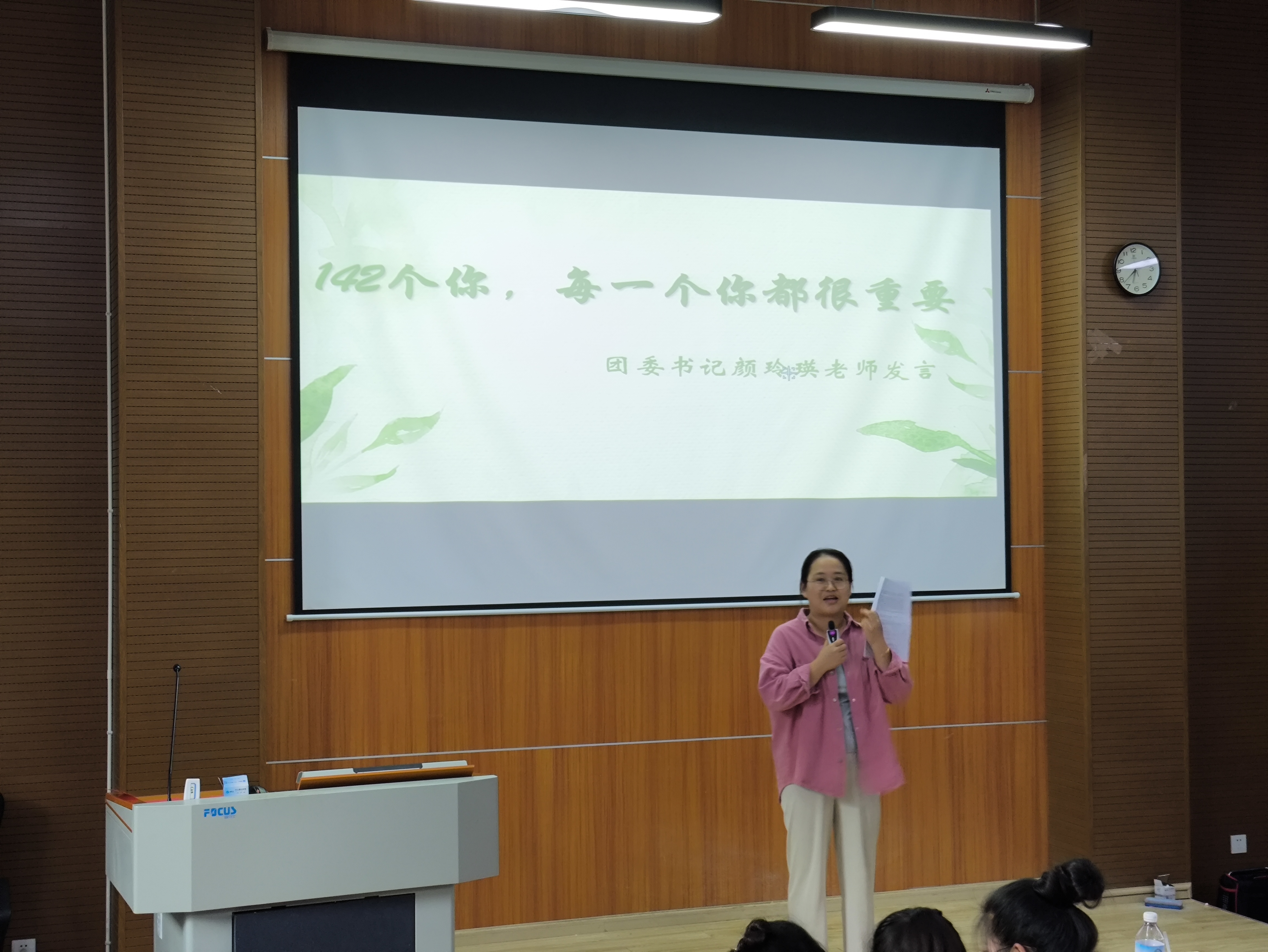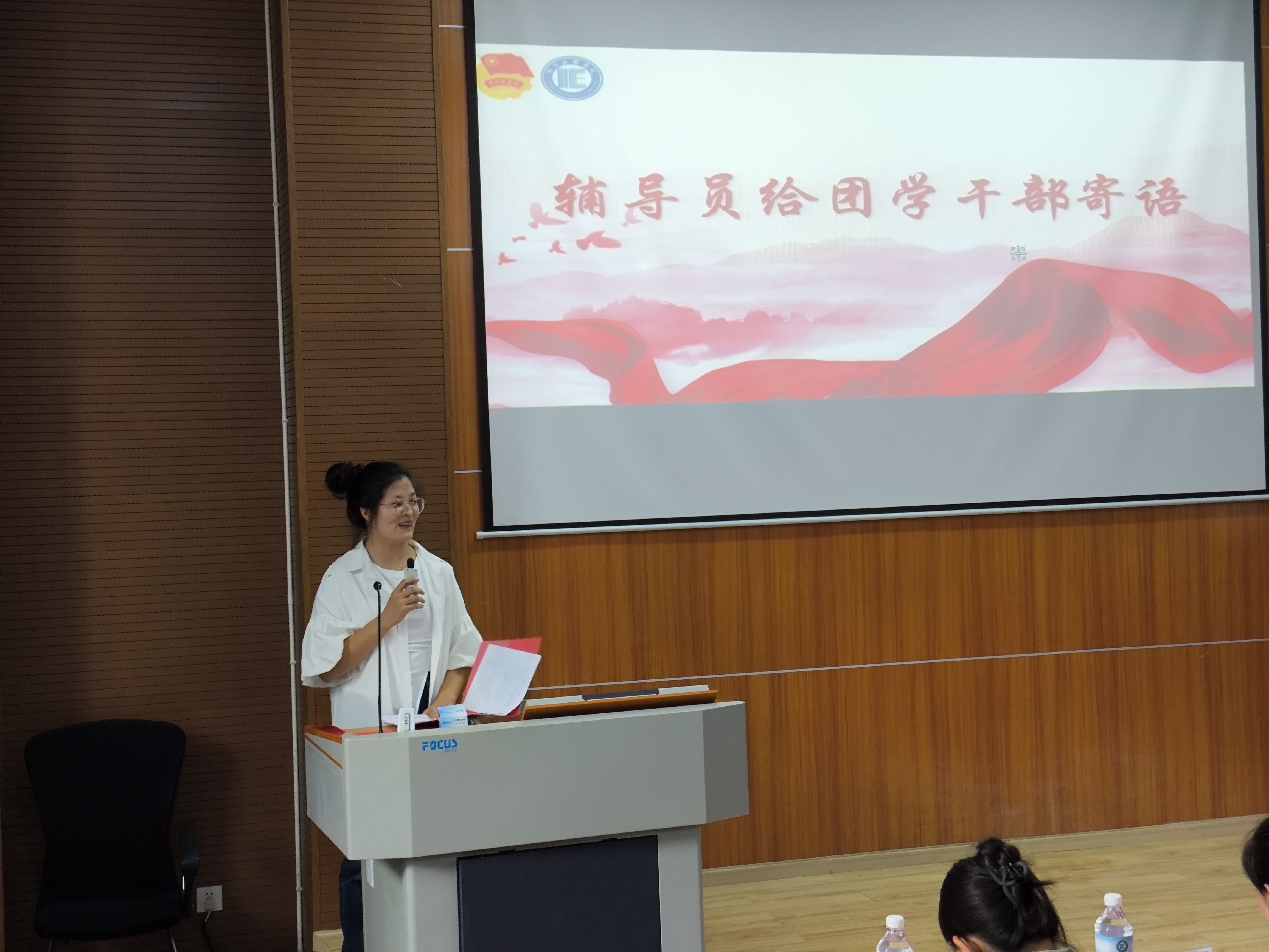 大会第八项议程,团委书记颜玲瑛老师讲话。颜老师回顾过去一年的点点滴滴,并对各位团委学生会成员的辛勤工作给予充分肯定,教导新任干部们要以良好心态去迎接往后的学习和工作。