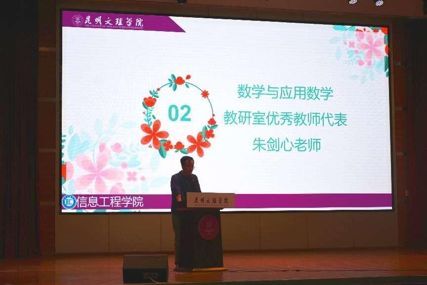 出席本次活动的领导有:信息工程学院院长刘敏昆老师、信息工程学数学与应用数学教研室优秀教师代表朱剑心老师、信息工程学院电子信息工程学院教研室主任卢巍老师、信息工程学院数据科学与大数据技术优秀教师代表陈可飞老师、信息工程学院计算机科学与技术教研室主任张春红老师、信息工程学院智能科学与技术教研室主任丁勇以及信息工程学院专职教师专职辅导员们。本次大会由信息工程学院杨皑琳老师主持。