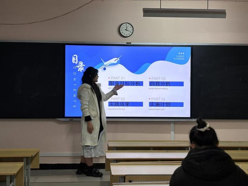 本次大赛共分为两个赛道,成长赛道和就业赛道。成长赛道设主题陈述和评委提问环节。选手在比赛开始前积极认真的准备PPT以及发言稿,对心仪的职业做出了调查,对自己发展方向以及大学各个时期有细致的规划,并制定好了毕业是否就业或者选择继续考研深造的计划;评委老师认真负责,在听完选手陈述后,细心指出选手的不足以及对选手的目标指出努力的方向。
