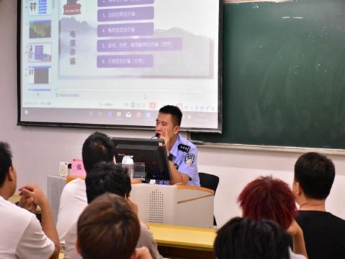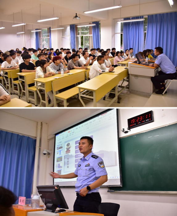 为进一步做好防范电信网络诈骗工作、提高学生防诈意识、减少各类电信诈骗案件发生、切实保护学生财产安全,2025年5月14日晚,由保卫处组织、信息工程学院协办的电信网络诈骗宣传讲座在D103顺利开展,本次讲座特别邀请到嵩明县公安局龙保派出所张虎警官担任主讲嘉宾。