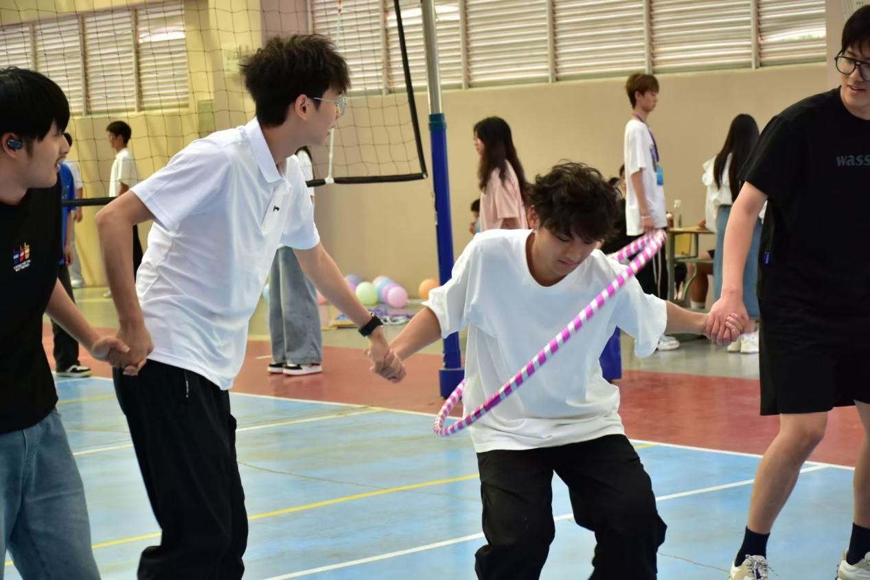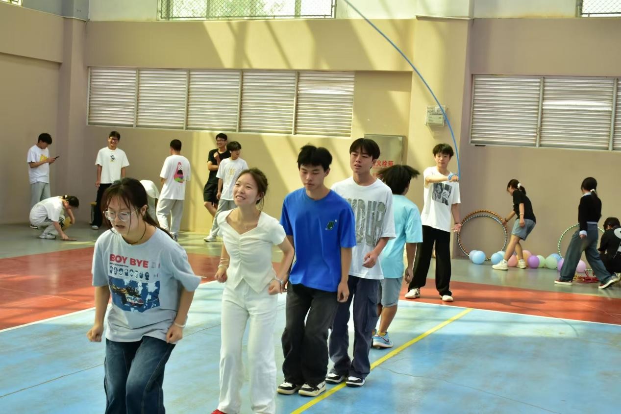 本次心理趣味运动会共设有四个趣味运动项目,分别是跳绳、呼啦圈传送、气球背对背竞速和摸石过河。每个项目都充满了趣味性和挑战性,考验同学们的团队协作、身体协调能力以及心理素质。