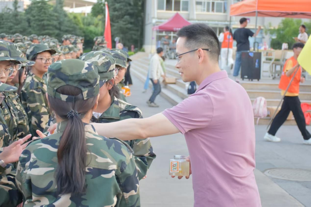 为切实关怀 2025 级新生军训生活,传递学院的关怀与期望,2025年9月4日,信息工程学院领导和辅导员代表亲赴训练场,为缓解高温天气给新生训练带来的不适,送上一杯杯现制清凉饮品,帮助新生们驱散身上的疲惫。