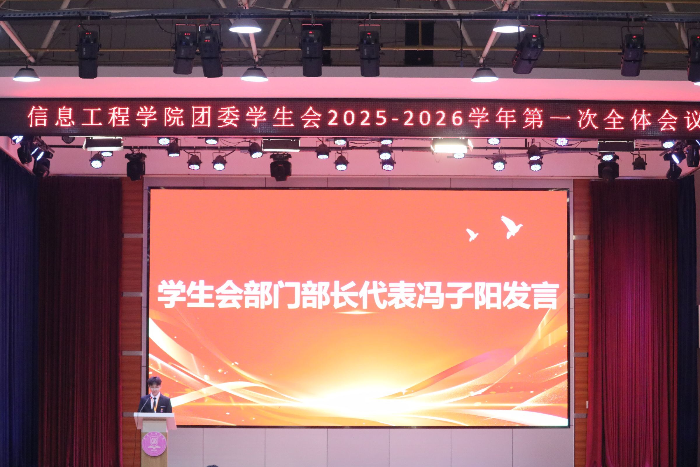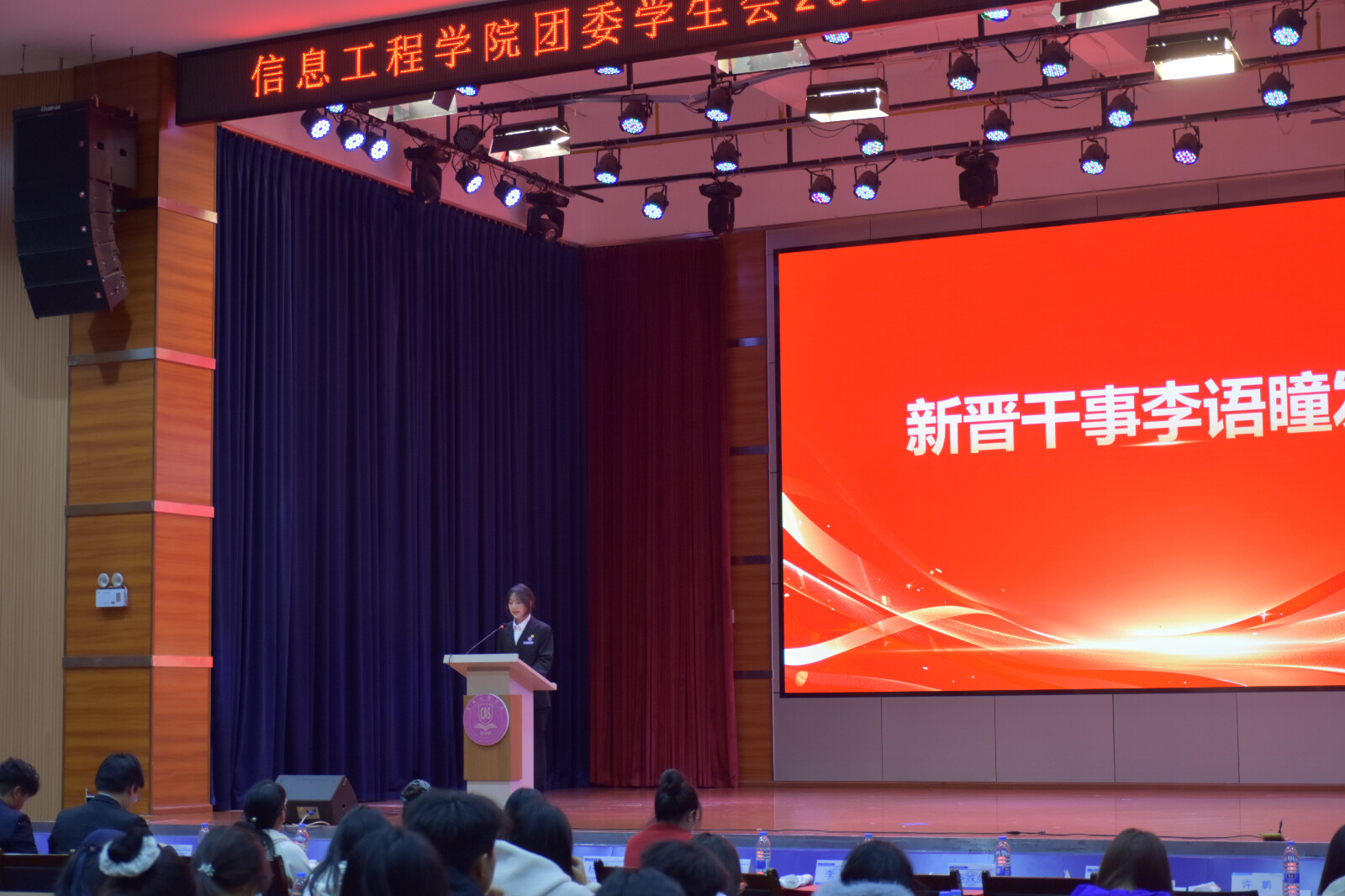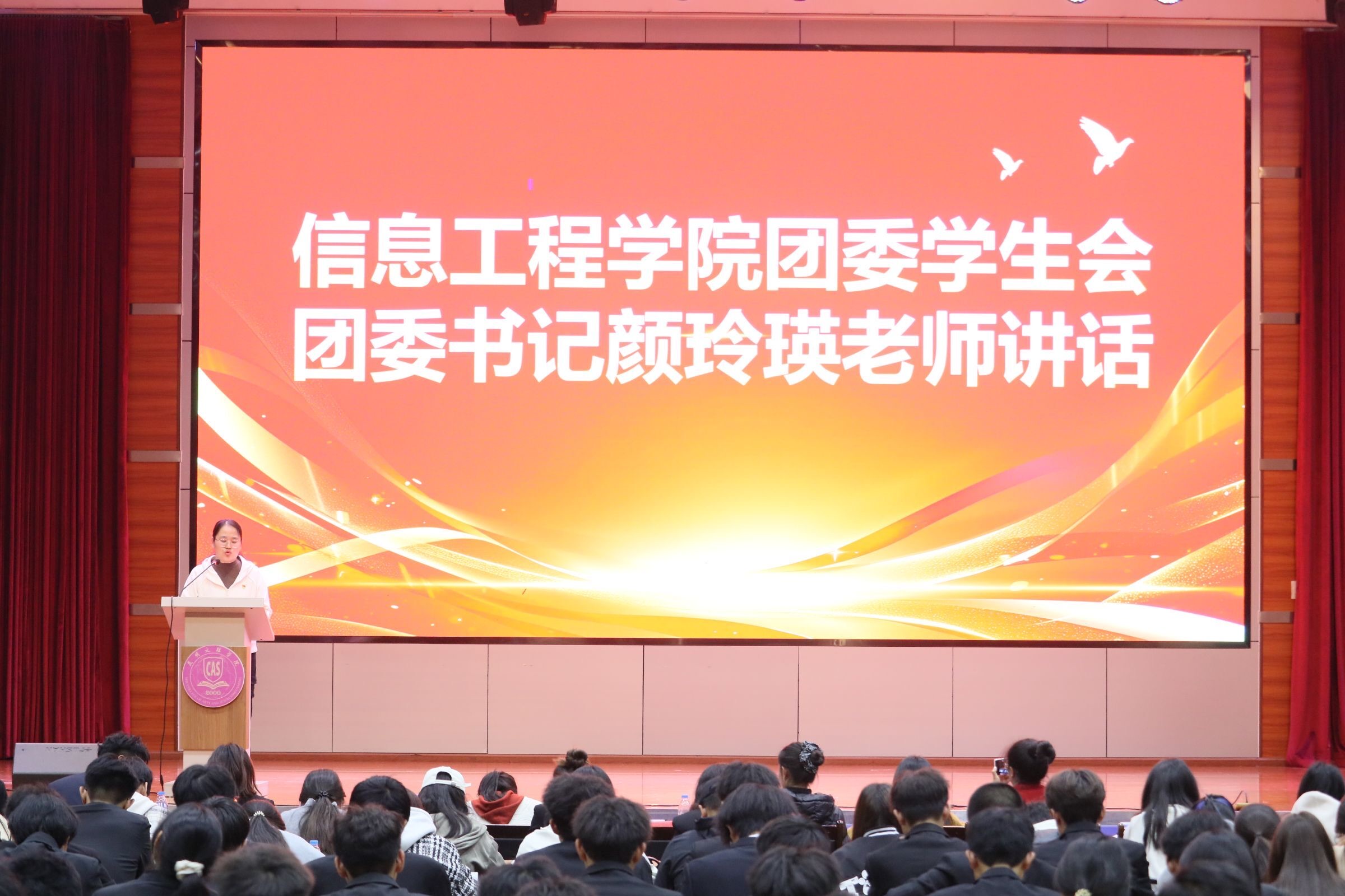 2025年10月23日星期四,信息工程学院团委学生会全委会于杨林校区报告厅隆重举行。 大会以“承初心·启新程·聚青春·赴未来”为主题,旨在选拔政治素质过硬、工作能力突出、服务意识强烈的学生骨干,为学生会注入新鲜血液,持续推动校园文化建设与学生服务工作高质量发展。