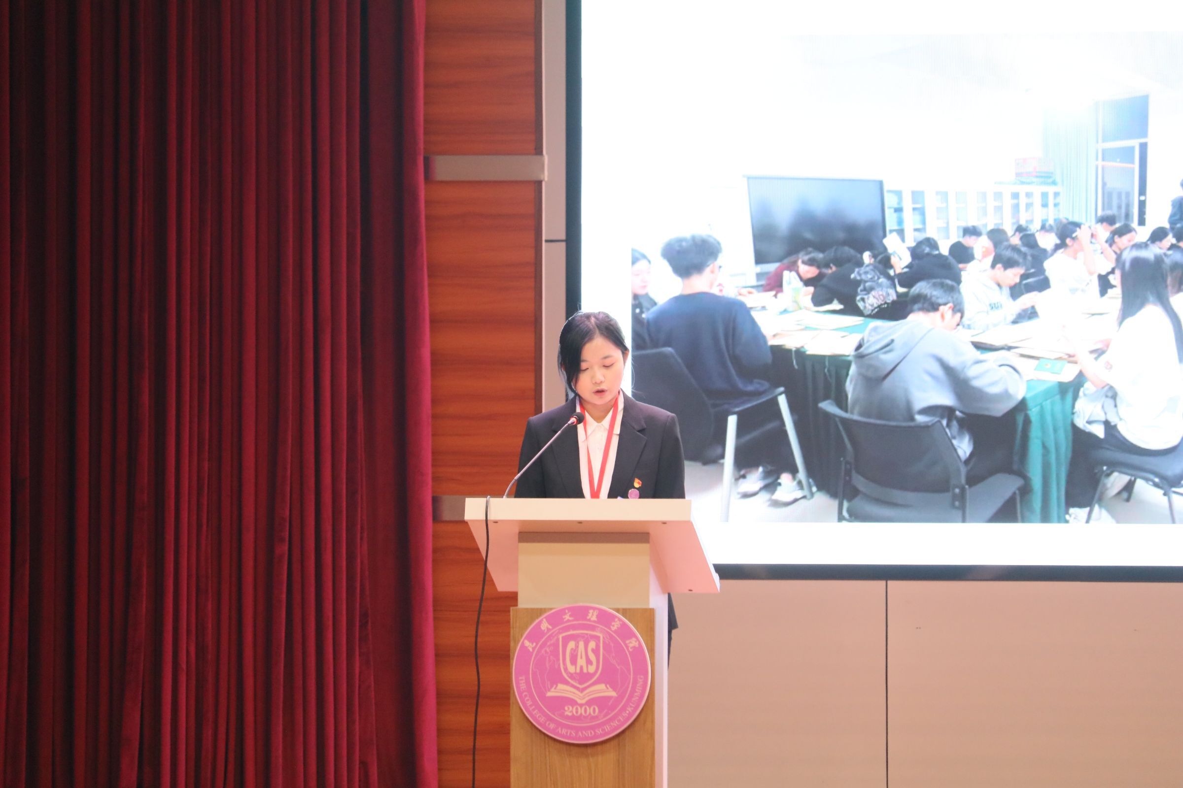 大会第七项,团委副书记杨仕琴发言。杨仕琴学姐的演讲既以“允许自己成为自己”鼓励新干事借学长学姐经验成长,又提出“三层进阶”期许:扛责任、炼能力、追思想,聚力共赴新征程。