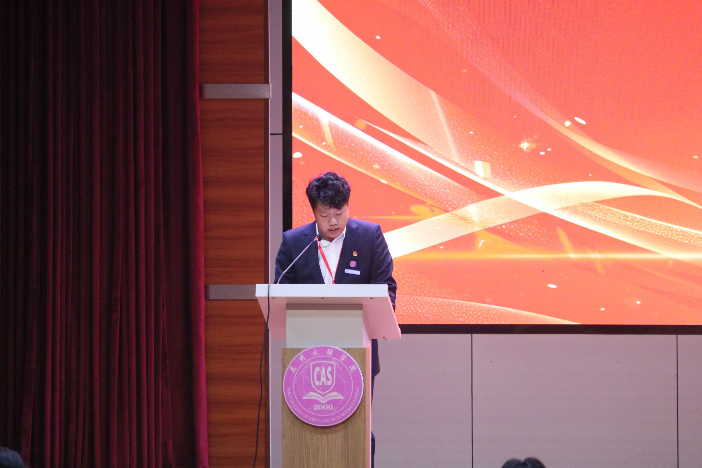 大会第八项,团委副书记黄飞龙发言。黄飞龙学长演讲明确:以服务同学为核心,践行集体主义凝聚团队力量,通过强化协作、厚植团队氛围,赋能组织高效运转与成员成长。