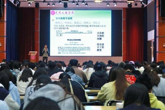 讲座中,吴晟老师从数学建模的本质出发,结合数学建模相关的实例出发,阐释了数学建模是优化社会决策的工具,更是连接数学与现实的桥梁,从天气预报波动精准测算到人工智能的算法时代,从疫情防控的数据分析到企业运营的效率提升,数学建模以其独特的逻辑魅力和实用价值深刻影响着我们生活的方方面面。