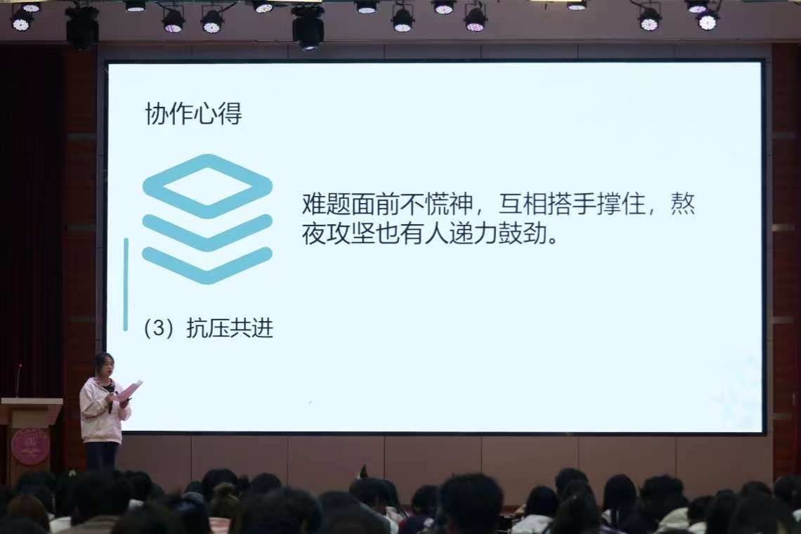 2023 级数学与应用数学专业 A 班的包海花同学带来了自己参加数学建模大赛的获奖经验分享。她表示,备赛中既要扎实吃透专业理论,也要学会和队友高效分工、互补短板;比赛时遇到模型跑不通、数据不合理等问题别慌,及时复盘调整思路很关键。最后她鼓励在场同学积极参与此类赛事,把课堂知识用到实际问题中,既能提升能力,也能收获长。
