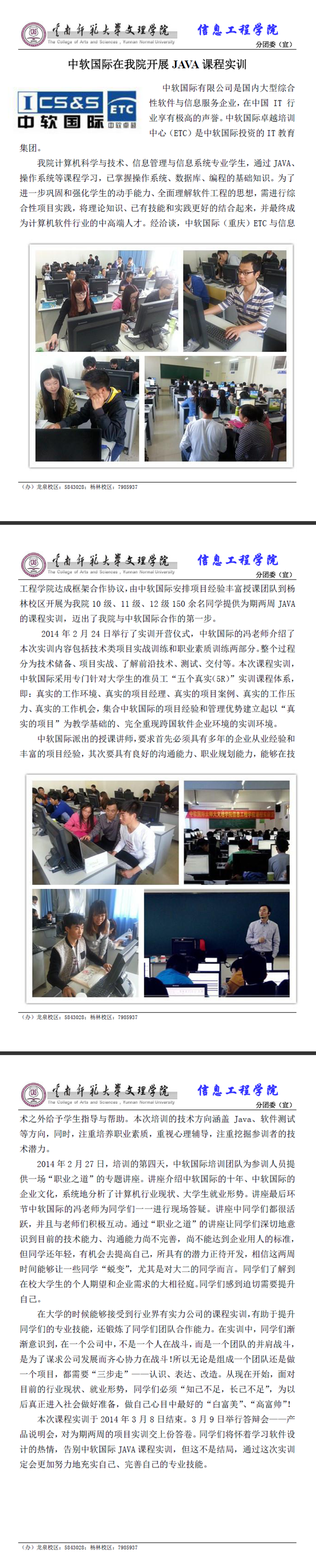 中软国际在我院开展JAVA课程实训