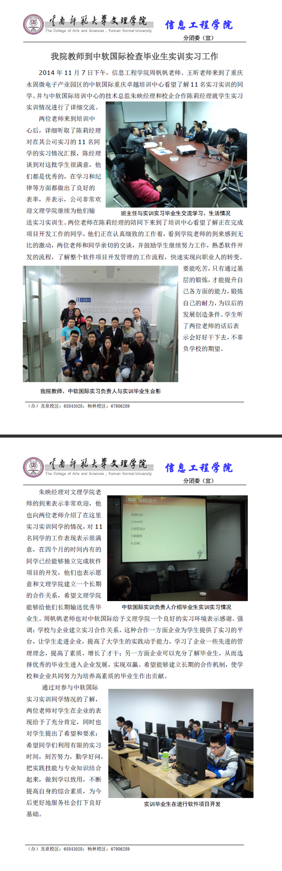 我院教师到实训基地中软国际看望毕业生